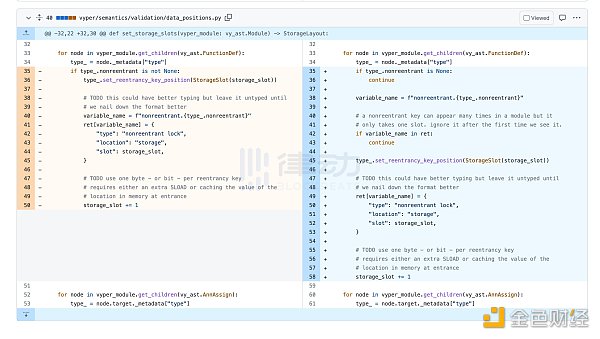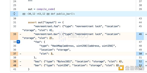 在 Box 后续分享出来的这几段 Vyper 代码中,可以明显看出问题。当锁名称第二次出现的时候,storage_slot 的数量会被覆盖,也就是说,在 ret 中,第一次获取锁的 slot 为 0 ,但是再次有函数使用锁后,锁的 slot 被加一。编译后使用错误的 slot,导致重入锁无法生效。