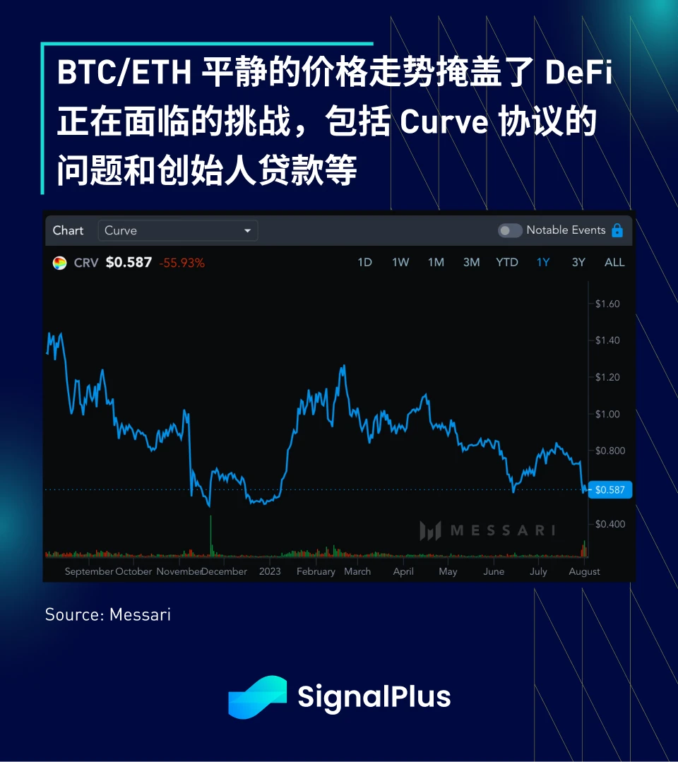 在加密货币方面,主要币种价格没有太多波动,BTC 和 ETH 分别在 ~ 29 k 以及 ~ 1.9 k 的价格水平,不过 DeFi 领域正存在著一个大风暴,与近期 Curve ( CRV ) 的黑客攻击以及保证金级联清算的隐忧有关;另外,在庆祝完 Torres 法官对 XRP 一案给出有利的裁决后, 加密货币昨天遭遇了挫折,在针对 Terraform Labs (Luna) 的案件中,Rakoff 法官做出了有利于 SEC 的裁决, Terra -USD (TUSD) 稳定币在出售给散户投资者时可能属于证券。