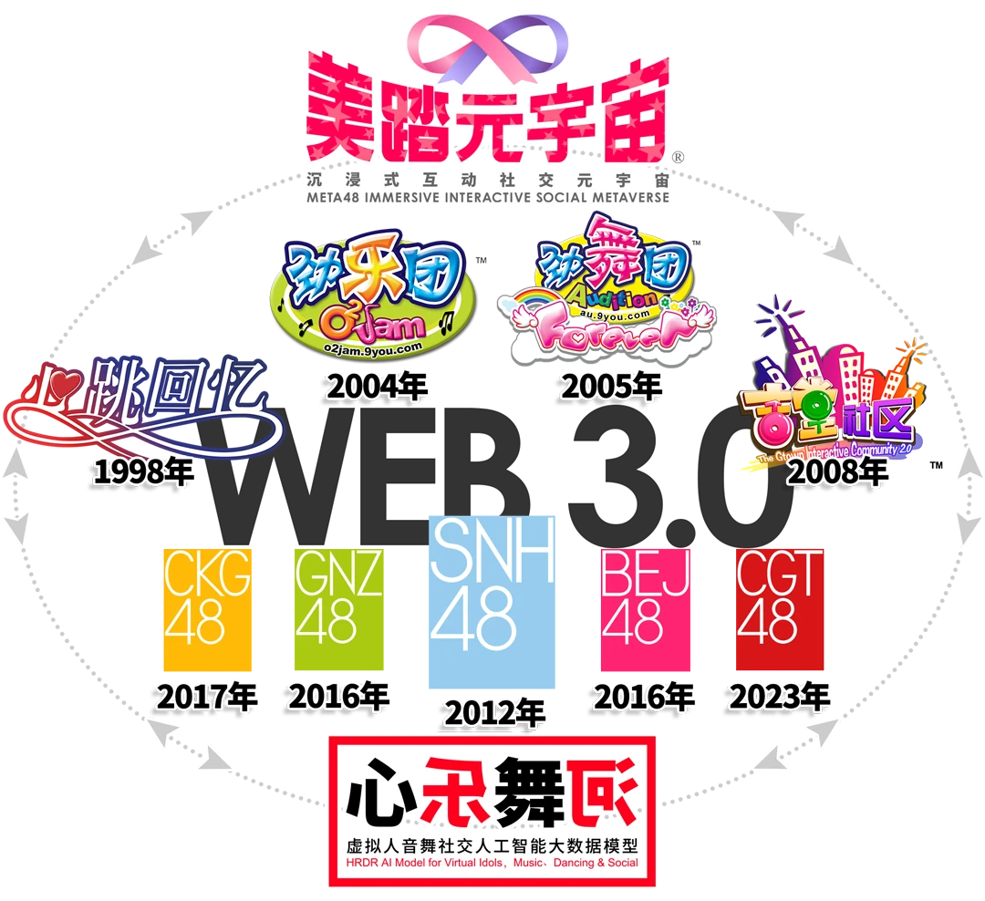 作为专注于虚拟人音舞社交等垂直领域的多模态人工智能大数据模型,“心乐舞河”的构思及名称组合了国内市场首款虚拟陪伴及恋爱养成游戏“心跳回忆”(1998),国内市场首款音乐舞蹈网游“劲乐团”(2004),“劲舞团”(2005),国内首个养成式大型青春女团“SNH 48 GROUP”(塞纳河)(2012)等,有着纪念由美踏控股创始人及其核心创业团队曾经带给我们的“一大批中国青年人的青春回忆”的寓意,并表达了美踏控股创始人及其领导的美踏控股创业团队将在 Web 3.0 和人工智能的全新时代中努力耕耘,发展互动娱乐和文娱产业。