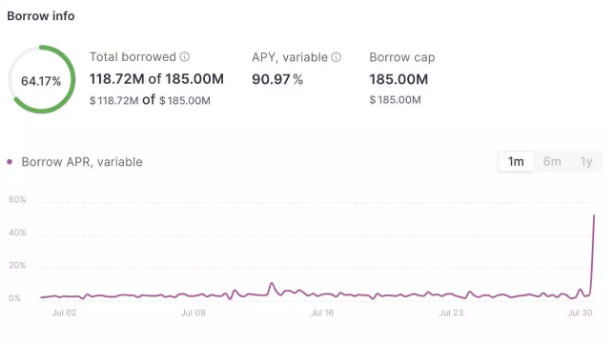 贷款机构正竞相从货币市场协议中提取资金。其中Aave 的 USDT 资金池利用率超过 50%,借款利率飙升至 91%,给 Michael Egorov 的头寸带来巨大压力:如果利率一直不下降,几天之内就会被清算。