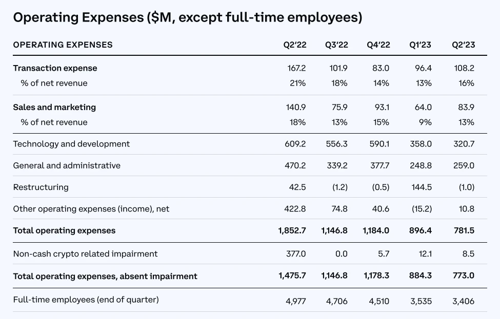 尽管比去年同期亏损收窄,但主要是来自节流,公司的整体收入状况在二季度表现并未改善,Coinbase 的交易量和收入双双下降。