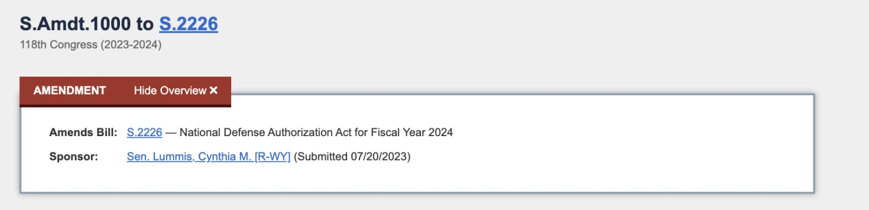 2023 年 7 月 28 日,美国参议院通过《 2024 财年国防授权法案》,其中包括了加强针对加密货币交易金融机构、混合器和“增强匿名性”加密资产监管的修正案。该修正案由美国参议员两党小组提出,成员包括纽约州民主党人 Kirsten Gillibrand、怀俄明州共和党人 Cynthia Lummis、马萨诸塞州民主党人 Elizabeth Warren 与堪萨斯州共和党人 Roger Marshall。