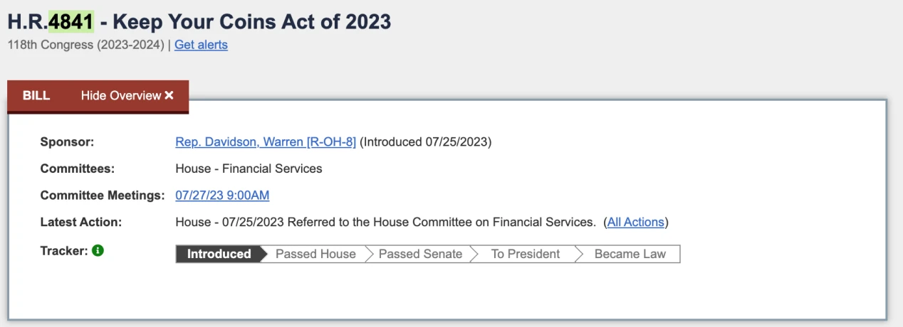 7 月 28 日,《保存代币法案》在众议院金融服务委员会获得通过,未来将提交众议院投票。