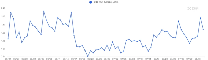 期货多空比: 1.6 。市场情绪逐渐偏向抄底。散户情绪多为反向指标, 0.7 以下比较恐慌, 2.0 以上比较贪婪。多空比数据波动大,参考意义削弱。