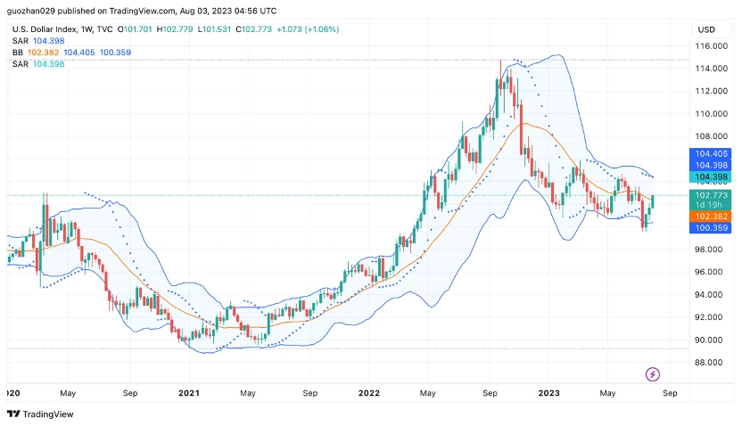 货币流动性趋紧。美国政府的大举发债计划、大超预期的就业数据、惠誉降级事件,三股做空力量相会交织,抬高美元和美债收益率。美股短期过热,部分资金撤离。中国股市开始政策性托底刺激。加密市场波动性处于历史新低水平。