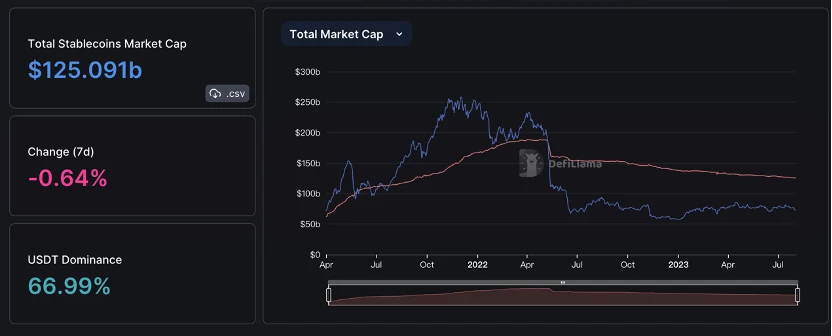 稳定币市值略有下降。7 月稳定币发行量减少 1% ,其中 USDT 市场份额上升至 72% ,USDC 下降至 21% 。