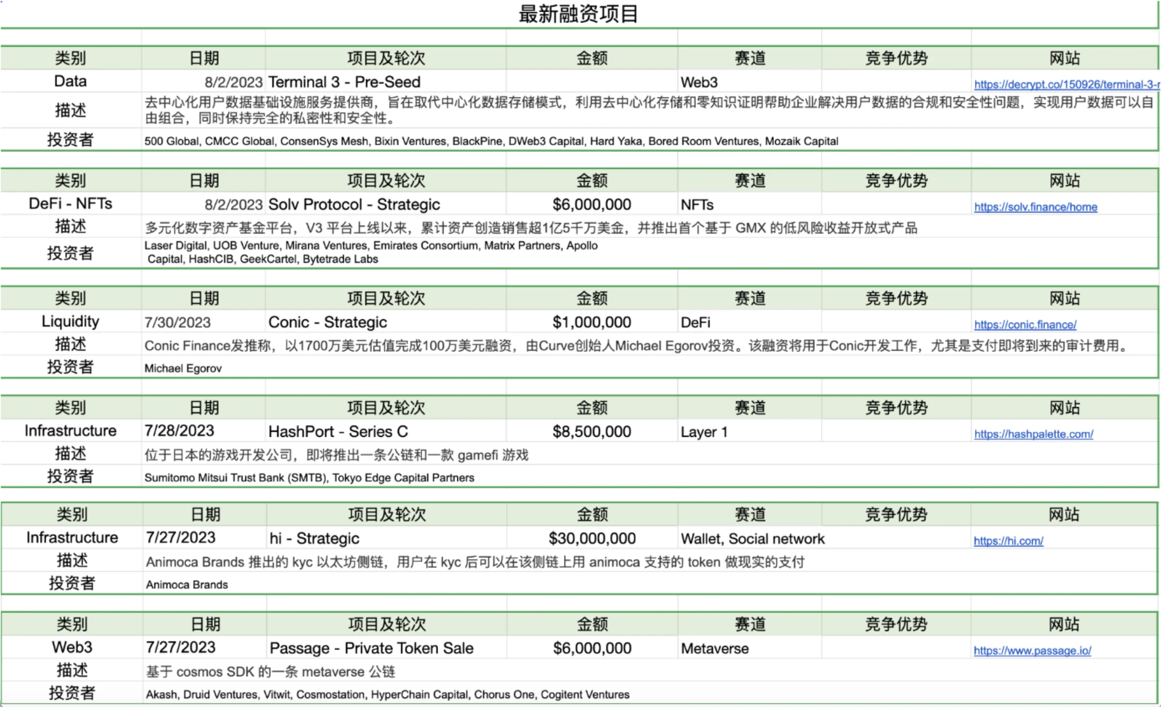 六、项目最新融资情况