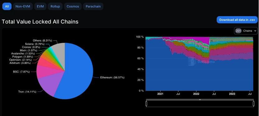 二、各公链 TVL 占比情况