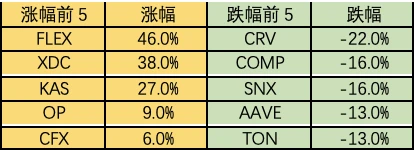 本周市场弱势震荡。短期 defi 龙头 CRV 和土狗项目 BALD 接连暴雷,影响市场情绪。场内流动性不足,机会多在链上小币新币。市场热点是 RWA 和 OP。