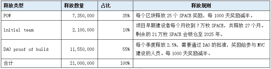 Microvision Chain 的代币释放并非完全的 POW 模式,还存在项目方预留、DAO 建设者预留等内容,更类似于 POW 与 POS 模式的结合。