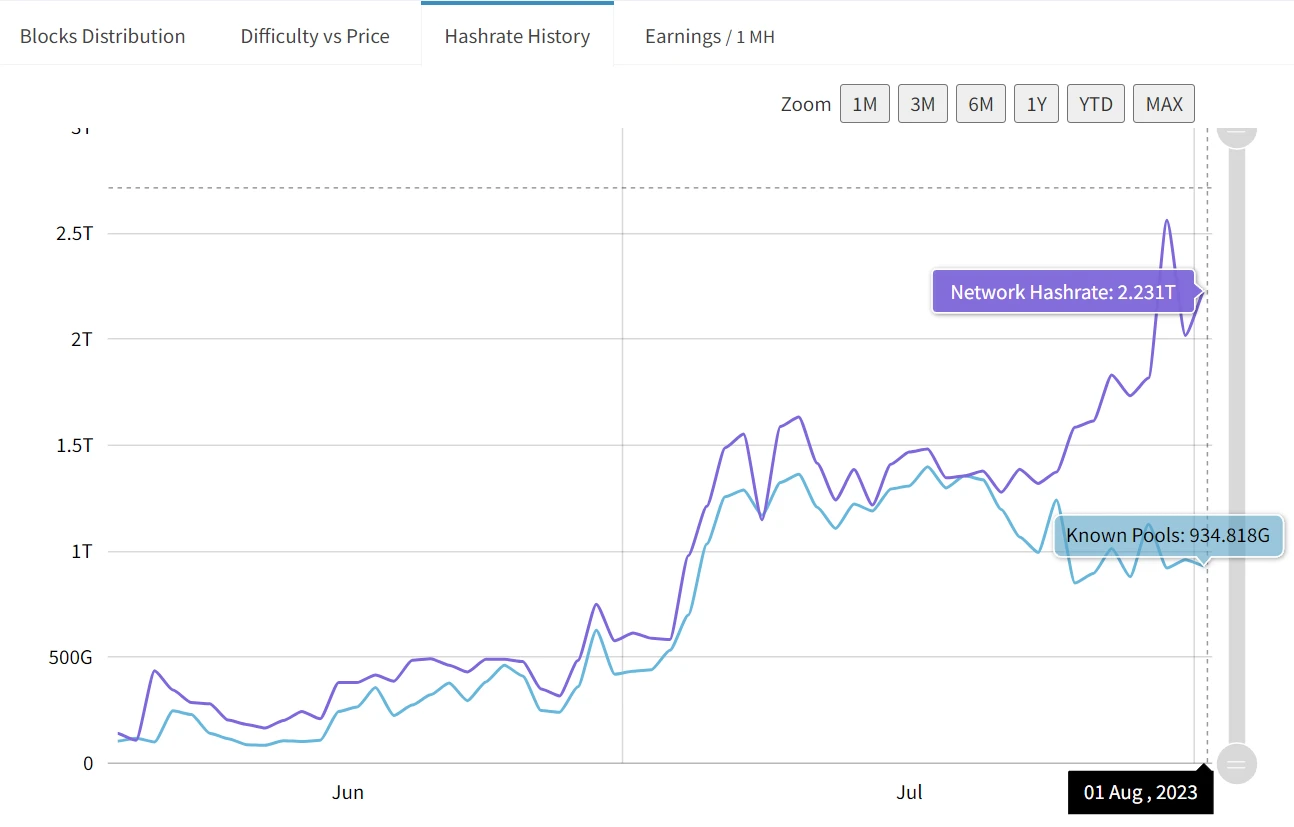 根据 Mining pool 的数据,各个项目的算力数据如下所示: