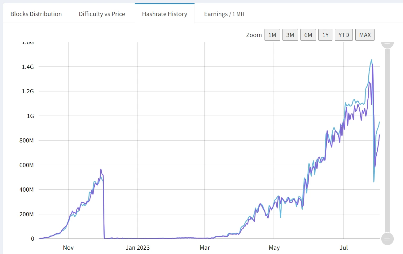 Dynex:整体处于上涨趋势中。近期由于算法升级,导致算力下降。