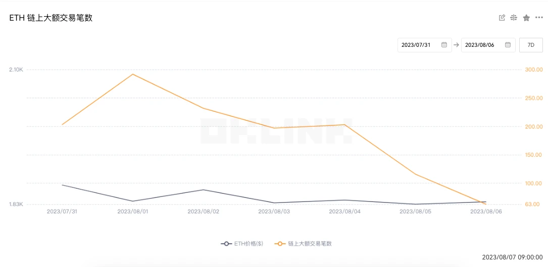 欧科云链 OKlink 数据 显示,上周链上大额交易笔数达到 1309 ,相较于前一周(1147)环比上涨 14.1% ,巨鲸交易热情略微上涨。