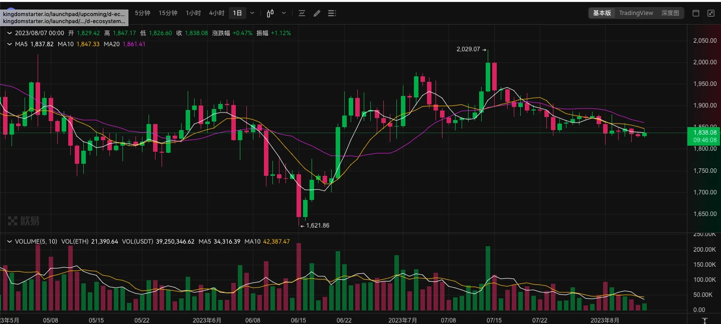 二级市场方面,目前 ETH 价格短时可能继续盘整,支撑位 1850 美元,阻力位 1900 美元。