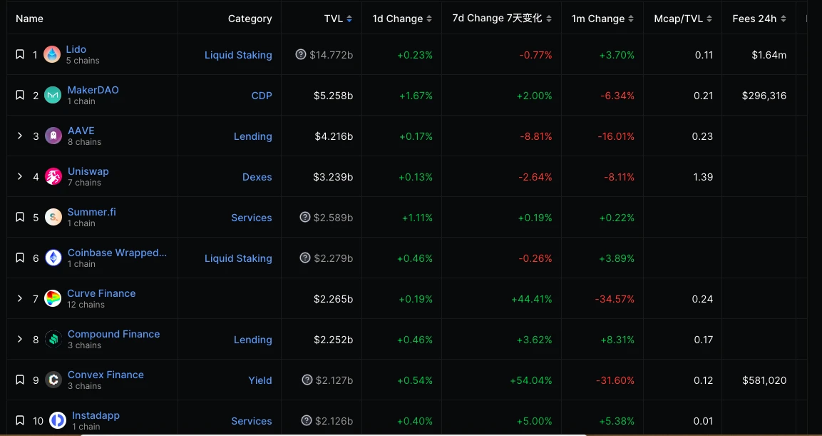 DeFiLlama 数据显示,上周链上锁仓抵押品价值从 230.7 亿美元上涨至 233.7 亿美元,环比上涨 1.3% 。从单个项目来看,锁仓价值前三名分别是: Lido 147.7 亿美元; MakerDAO 52.5 亿美元; Aave 42.1 亿美元;