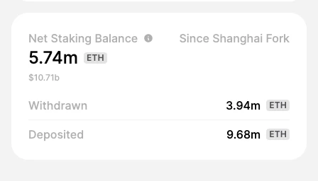 token.unlocks 显示,目前 ETH 全网质押总量 2281 万个 ETH,质押率 18.72% ;自上海升级以来,累计存款量 968 万 ETH,上周数据为 947 万,过去一周新增 21 万个;累计取出 394 万个,上周数据为 386 万个;总净质押量增加 574 万个,前周为数据 561 万个,过于一周增加 13 万个。