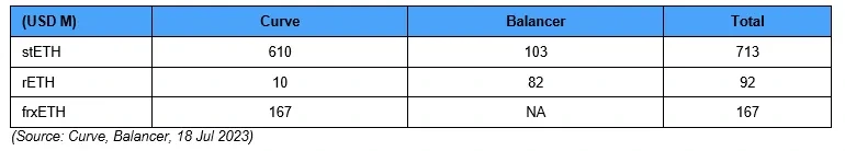 这是由于围绕 stETH 代币的流动性和实用性形成的幂律动态。stETH 是 DEX 上最具流动性的质押 ETH 衍生品。仅在以太坊上,stETH/wstETH 的流动性约为 7 亿美元(与 WETH 和 ETH 配对),是 rETH 的 8 倍。因此,可以说在所有的替代方案中,Lido 最好地实现了流动质押协议的主要目标 —— 为质押者提供最佳的流动性。