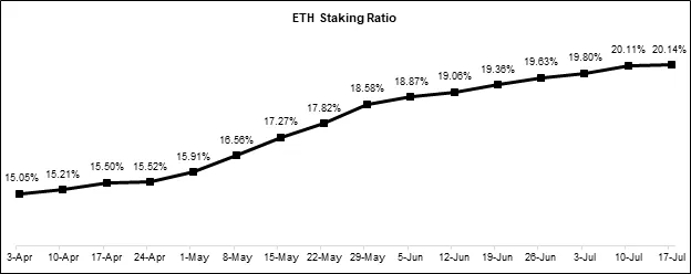 我们预计在未来 12 个月内,以太坊的质押比例将达到 30% ,因为用户开始消化提款的降低风险。