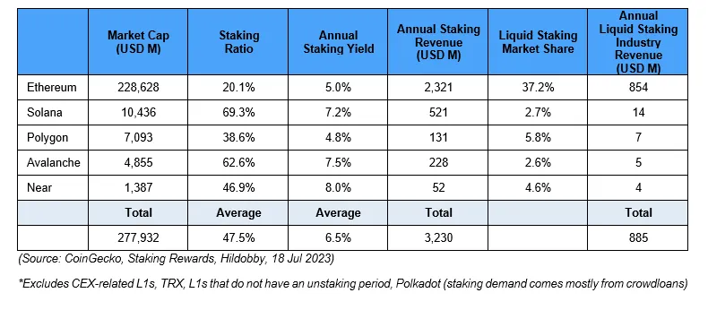 总而言之,这些驱动因素催生了一个每年产生数百万美元收入的行业。仅排名前五的 PoS 智能合约平台每年就产生了 8.93 亿美元的奖励,这些奖励归属于流动性质押协议。