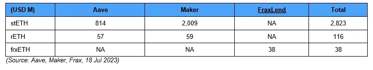 随着建立了可观的流动性基础,stETH 的流动性护城河进一步增强,因为该代币的更多用途得以解锁。其中一个例子是将流动质押的 ETH 用作货币市场协议中的抵押品。流动性是评估资产是否适合用作抵押品的关键参数,只有具有足够的流动性深度,才能有效处理资产清算。因此,毫不奇怪的是,stETH 也是在货币市场协议中最广泛使用的质押 ETH 衍生品作为抵押品。