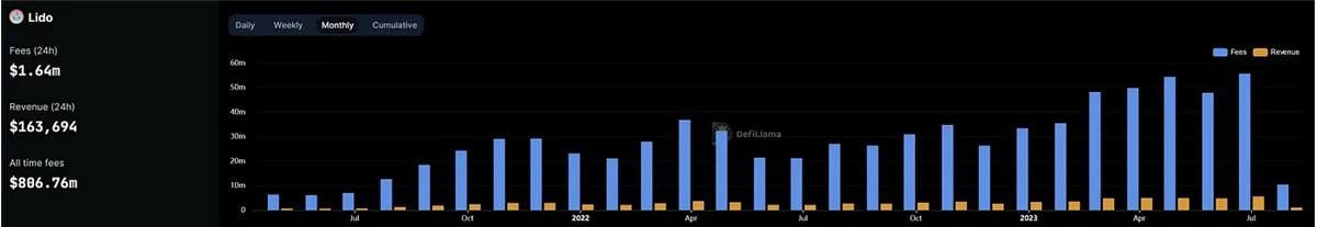 在这方面,我们对以太坊的长期前景特别看好,我们目睹了主要协议升级的成功,例如伦敦升级(EIP-1559 —— 改善交易费用和 ETH 通证经济学的用户体验)、巴黎升级(PoS —— 减少能源消耗并为可扩展性升级奠定基础)以及上海/Capella 升级(ETH 提款)。从采用的角度来看,以太坊仍然是安全的 L1 DeFi 活动的首选平台,应用程序如 Aave 和 Uniswap 使用户能够轻松交易和借贷。同时,它继续作为众多扩容解决方案的安全结算层,从 zkRollups(Polygon zkEVM、zkSync、 Starknet )到 Optimistic rollups( Arbitrum 、 Optimism ),实现了廉价和快速的交易,并为 ETH 交易费做出了贡献。因此,我们相信 Lido 将从这种本土优势中获得实质性的好处。