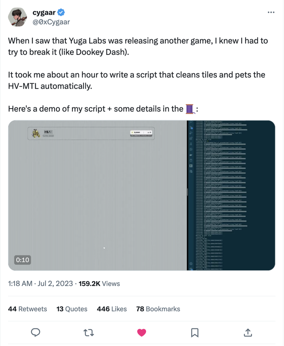 遗憾的是,作者 @xClearHat 认为,Yuga 本可以通过以下方式来避免 / 延缓游戏被作弊者完全入侵的结果: