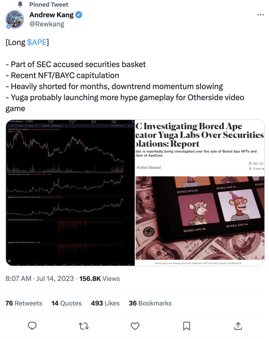 去年十月 Yuga Labs 被 SEC 调查,但今年 6 月 SEC 的起诉清单里不包括 $APE