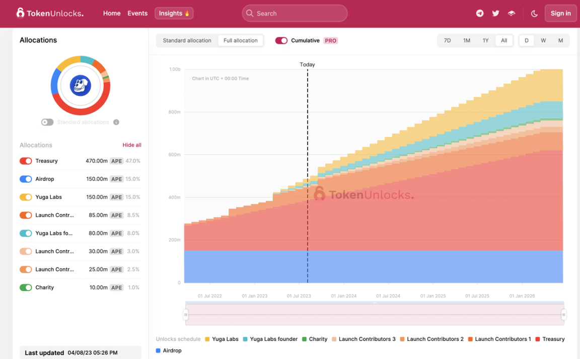 且不论 Yuga Labs 收到的代币本来就是随时可售卖,就算项目方高风亮节不抛售这部分代币,也只是同期质押系统分配的代币奖励和投资人、项目方代币解锁的零头。