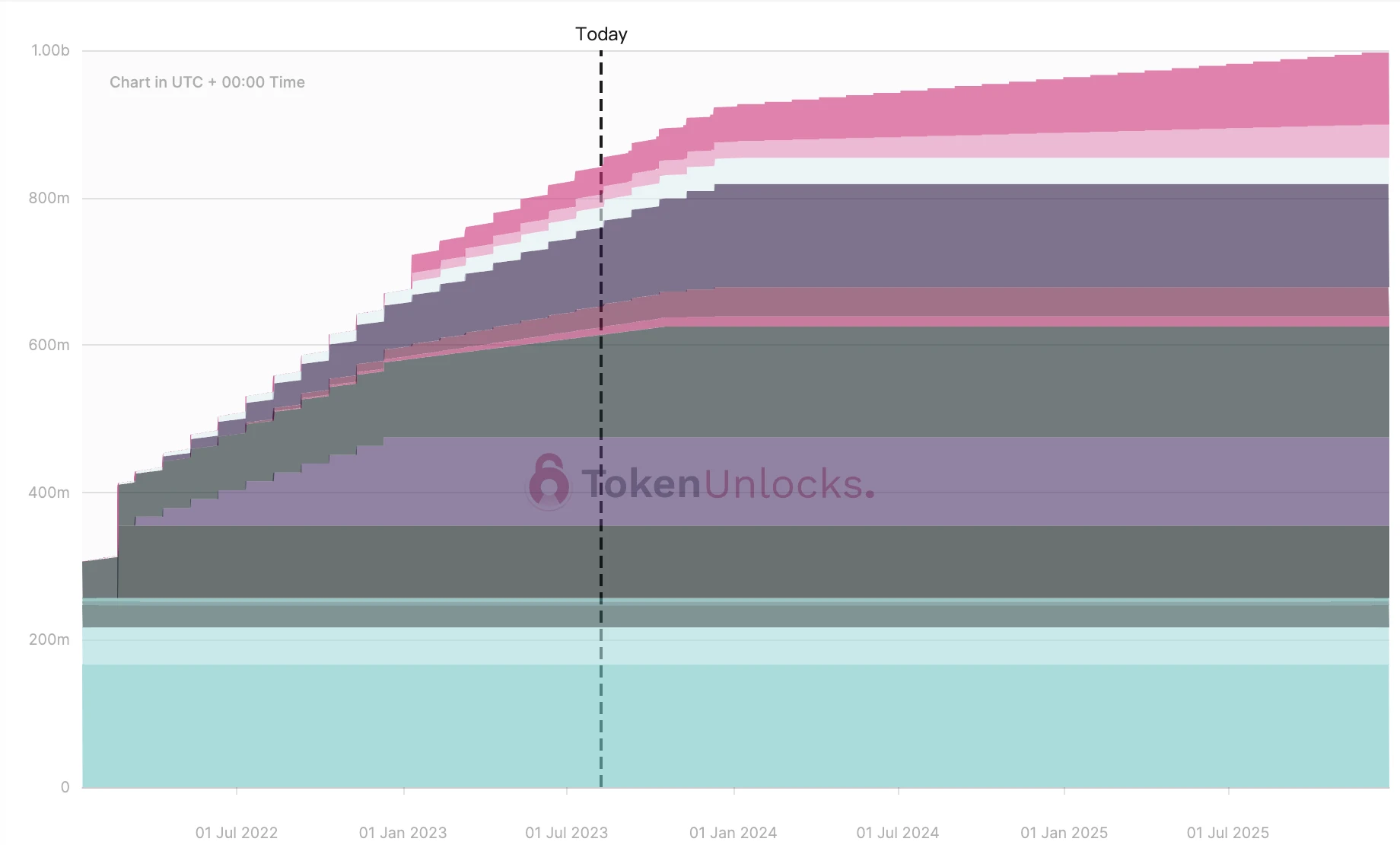 在本周解锁的代币之中,APT 是最值得注意的一个。其解锁量占据总流通量的 2.07% 。尽管这一数字仍不是一个颇为显著的大额数字,但已是本周解锁代币中金额最为庞大的一个。
