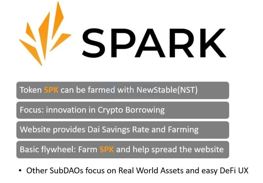 我们以 Spark DAO 为具体示例。SPK 是六个初始 SubDAO 代币之一,NST 很快就可以挖掘。它已经有一个现成的产品:http://Sparkprotocol.io