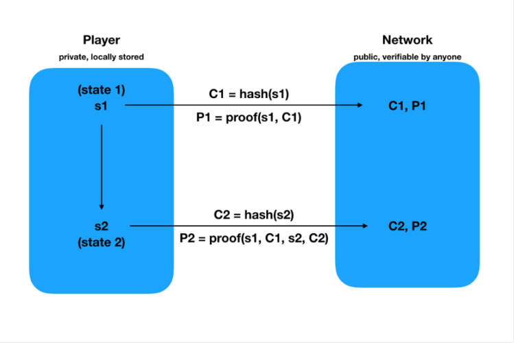 当玩家进行移动时,他们会发送他们离开的星球哈希值和目的地的哈希值,以及证明这是有效行为的零知识证明。
