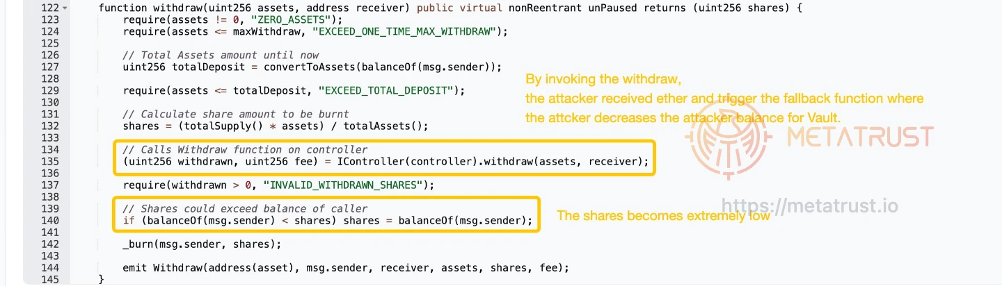 MetaTrust:Earning.Farm遭到攻击,原因是合约的 "提款 "函数存在逻辑问题