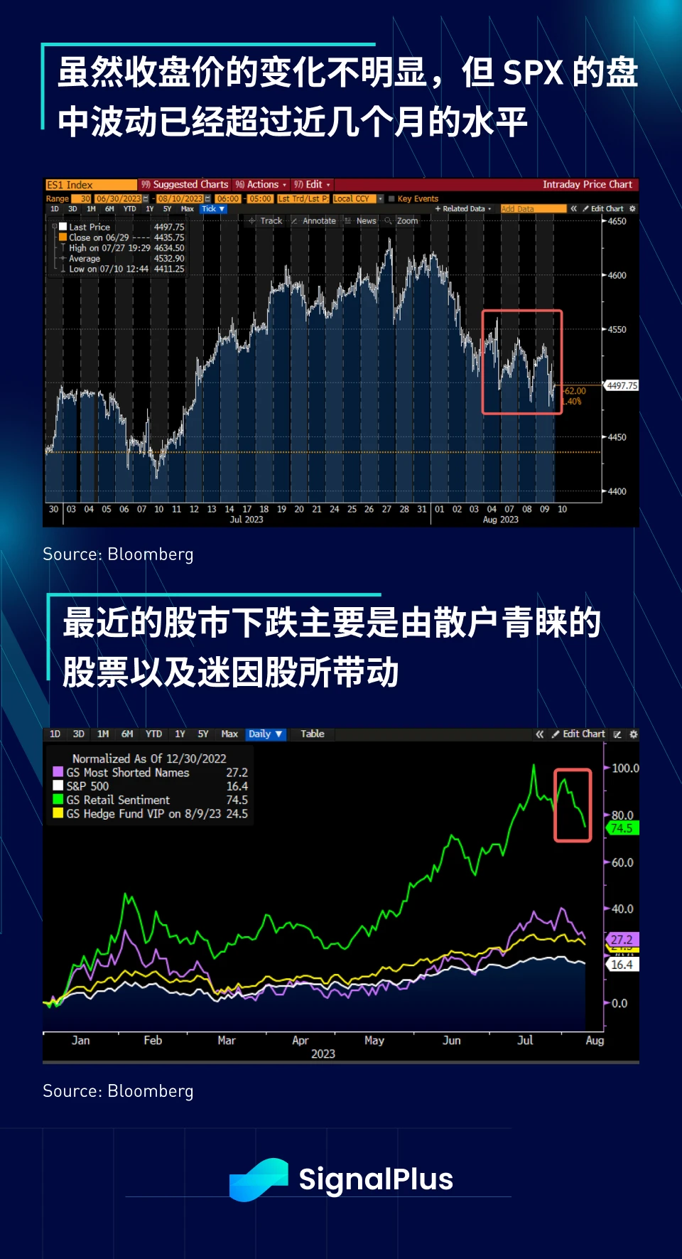 SPX 昨天收盘下跌 0.7% ,以科技股为主的 Nasdaq 指数交易较为活跃,Nvidia 和 Tesla 均因头寸调整而出现单日 3-5% 的下跌幅度;虽然以收盘价来看变化不明显,但 SPX 的日内波动已经超过过去 2 个月的水平 ,我们也继续观察到一些初步迹象,股市可能正在一个顶部形成的过程,受散户欢迎的股票表现相对不佳,而 RSI 和振荡指标等其他动量指标也开始显示出潜在的警告信号。