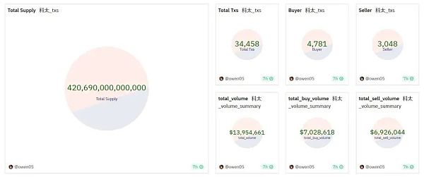 8 月 8 日正式上映的反诈题材电影《孤注一掷》,片中多处涉及加密元素,其中与电影中用于诈骗的同名Meme「科太币」,短短几天内链上成交量就已达到约 1400 万美元,无论是人数还是持有地址数,都热度高涨。