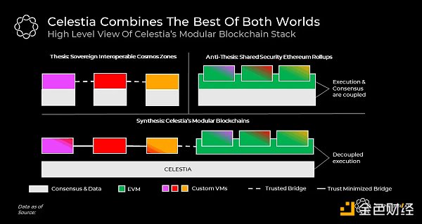 Celestia 是一个数据可用性层和 Cosmos 链,可能是模块化板块中最重要的项目。它的原生Token TIA 将需要从 Cosmos 桥接到其他生态系统,而 Celestia 的 Rollups 可能会通过 IBC 桥接资产。