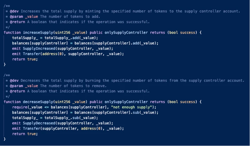 允许管理员随意增加总供应量(increase/decrease supply);