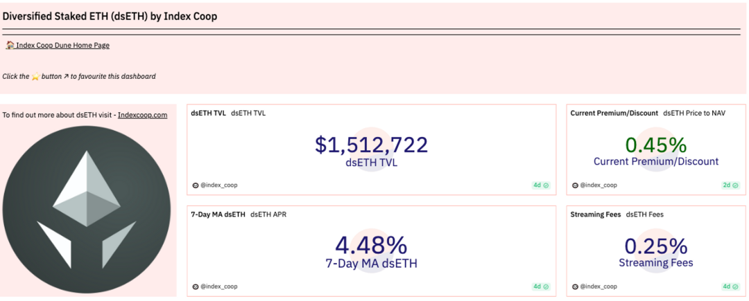 加密货币指数协议 Index Coop 推出多元化 ETH 质押指数 Token dsETH,dsETH 目前由 stETH、rETH、wseth 和 sETH 2 组成。