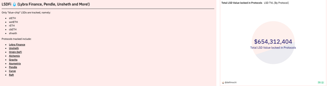 据不完全统计,目前 ETH 质押规模为 $ 22.7 M ETH,约 414 亿美金,而锁定在 LSDfi 协议内的资金不足 10 亿美金。