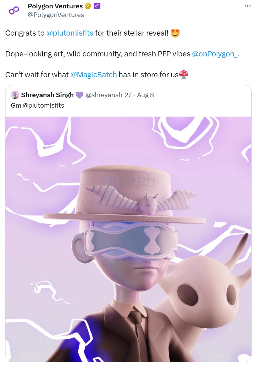 Pluto Misfits 开图后,Polygon Ventures 官推亲自发文祝贺
