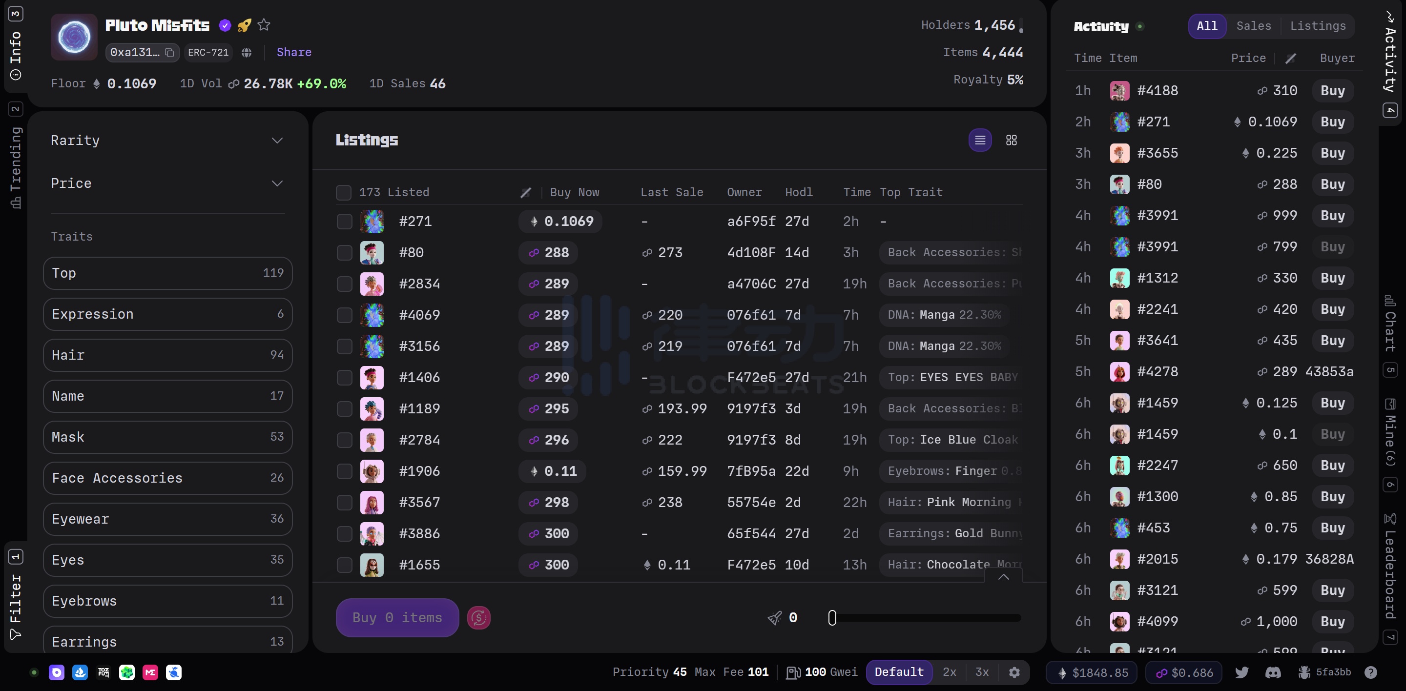 Pluto Misfits 总量 4444 个,发售价为 99 Matic,目前地板价已经来到 288 Matic。值得一提的是 Pluto Misfits 在开图后不跌反涨,整体走势平稳向上。