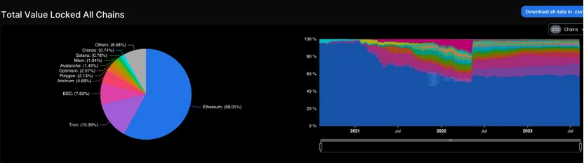 稳定币继续流出。主要因为美国近期会发售 1000 亿债券,目前一年期美债无风险利率 5.3% ,远高于场内 defi 收益率。