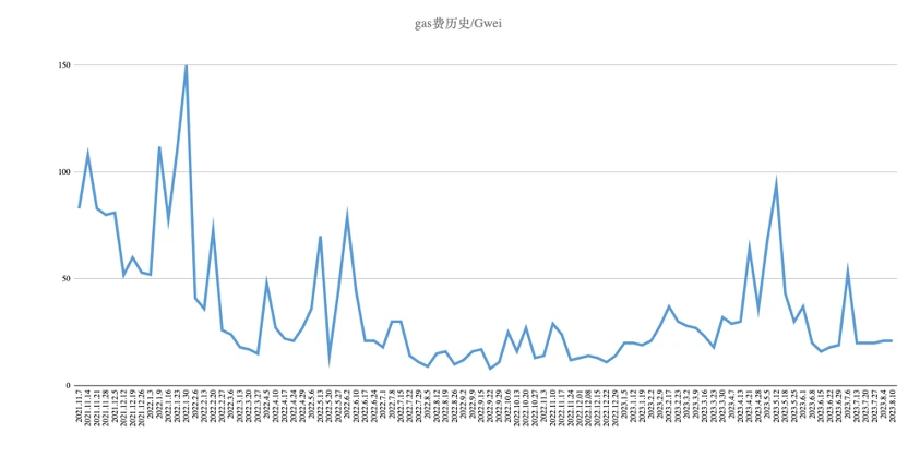 当前链上转账费用约为$ 1.32 ,Uniswap 交易费用约为$ 11.94 ,Opensea 的交易费用约为$ 4.63 。本周 Gas 水平基本与上周持平,并且本月 Gas 几乎没有明显波动,市场缺乏活跃度。但链上新币较为活跃。