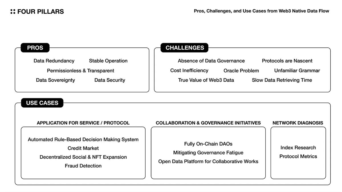 正如 Kant 所说的那样,我们只能目睹事物的现象,而无法触及其本质。尽管如此,我们还是利用了被称为「数据」的观察记录来处理信息和知识,我们看到信息技术的创新如何推动文明的发展。因此,在 Web3 市场中构建一个数据管道,除了具有去中心化的特点外,还可以作为实际捕捉这些机遇的起点发挥关键作用。我想用几点思考来总结本文。