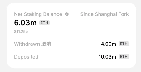 token.unlocks 显示,目前 ETH 全网质押总量 2327 万个 ETH,质押率 19.09% ;自上海升级以来,累计存款量 1003 万 ETH,上周数据为 968 万,过去一周新增 35 万个;累计取出 400 万个,上周数据为 394 万个;总净质押量增加 603 万个,前周为数据 574 万个,过于一周增加 29 万个。