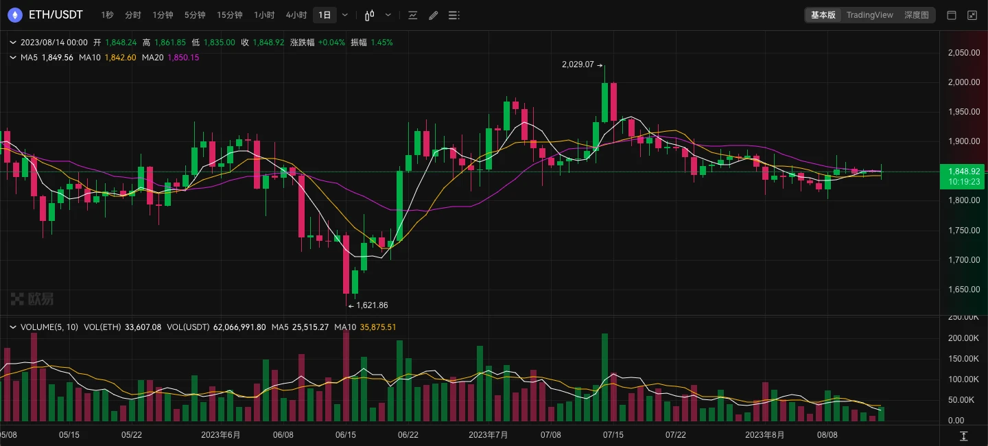 ETH 日线图,来自 OKX