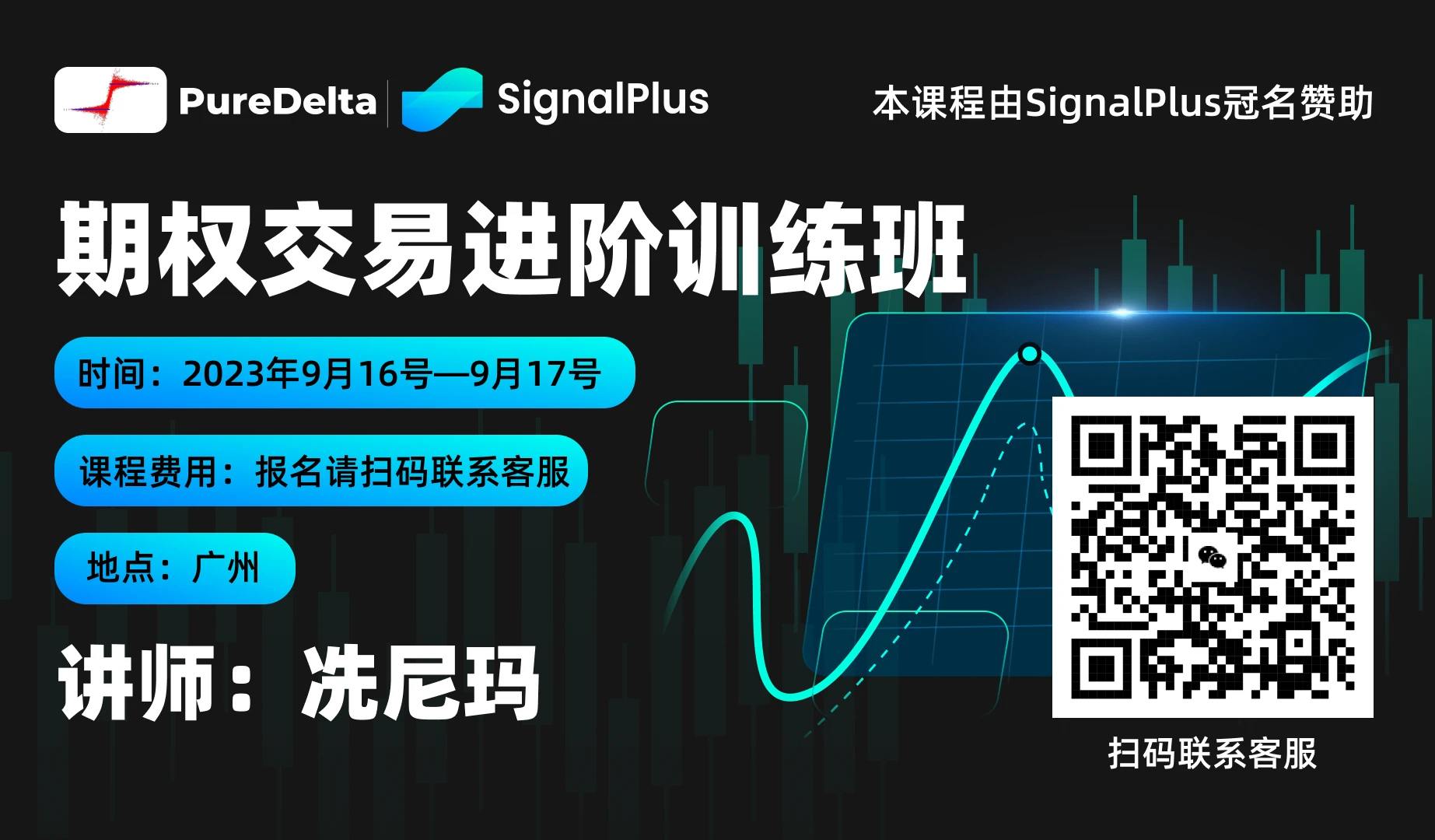 SignalPlus 冠名赞助,由冼尼玛老师授课的《期权交易进阶训练班》火热招生中,请扫描海报二维码联系客服参加吧。
