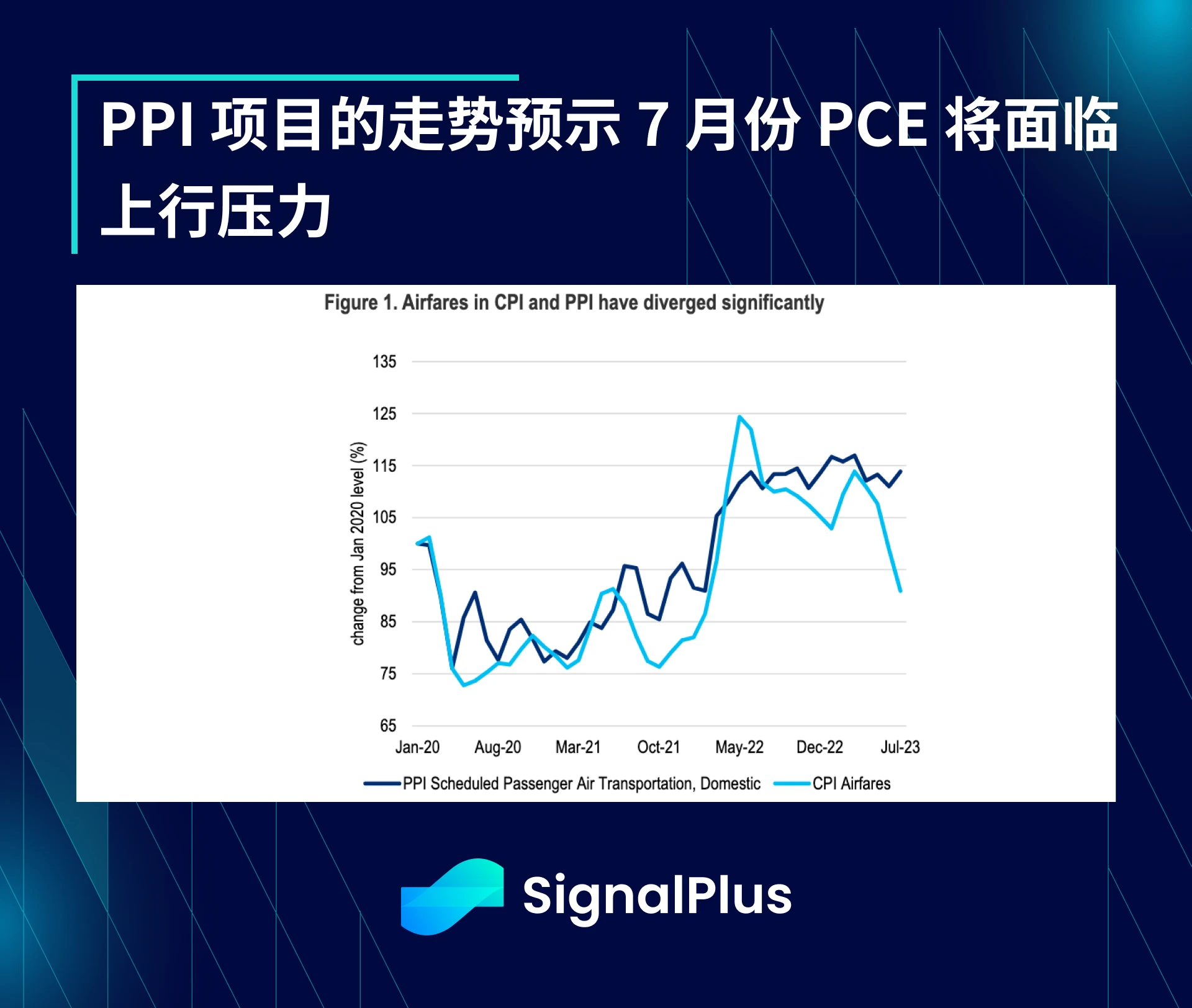 与信息混杂不清的 CPI 数据不同,上周五公布的 PPI 数据明显高于预期 ,整体 PPI 和核心 PPI 环比上涨 0.3% ,为年初以来最强劲的数据,PPI 同比增长从上月的 0.2% 升至 0.8% ,且与 PCE 相关的组成项目(例如机票)均高于预期。