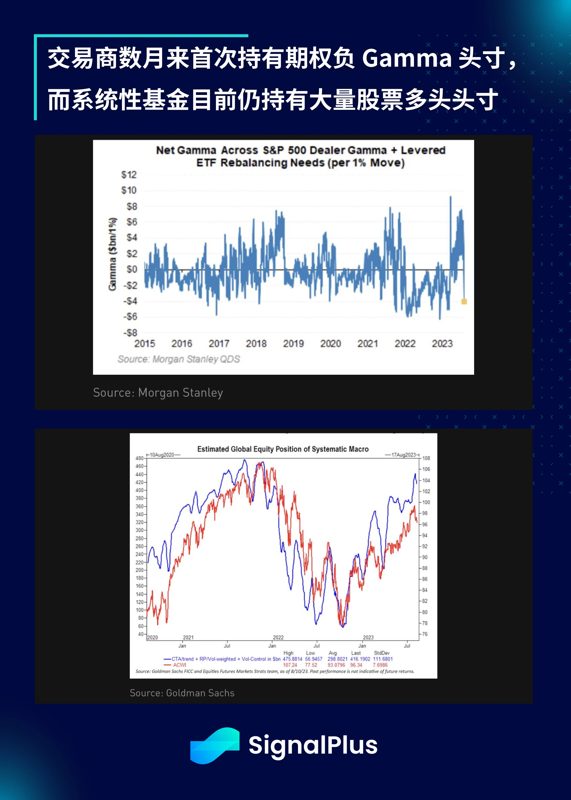 从头寸的角度看, Morgan Stanley 报告称, 交易商的期权净 gamma 头寸数月来首次转为负数,这也解释了上周股市出现的一些较剧烈的波动 ;此外,由于系统性基金仍大量持有股票多头头寸,市场在短期内仍容易受到头寸主导的抛售的影响,我们仍建议在此时采取更具防御性的策略。