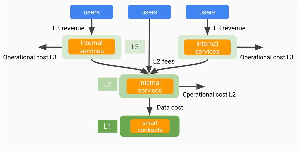 L3 的收入可能来自费用、订阅(例如游戏)或其他机制,如收入分享(例如 NFT)。