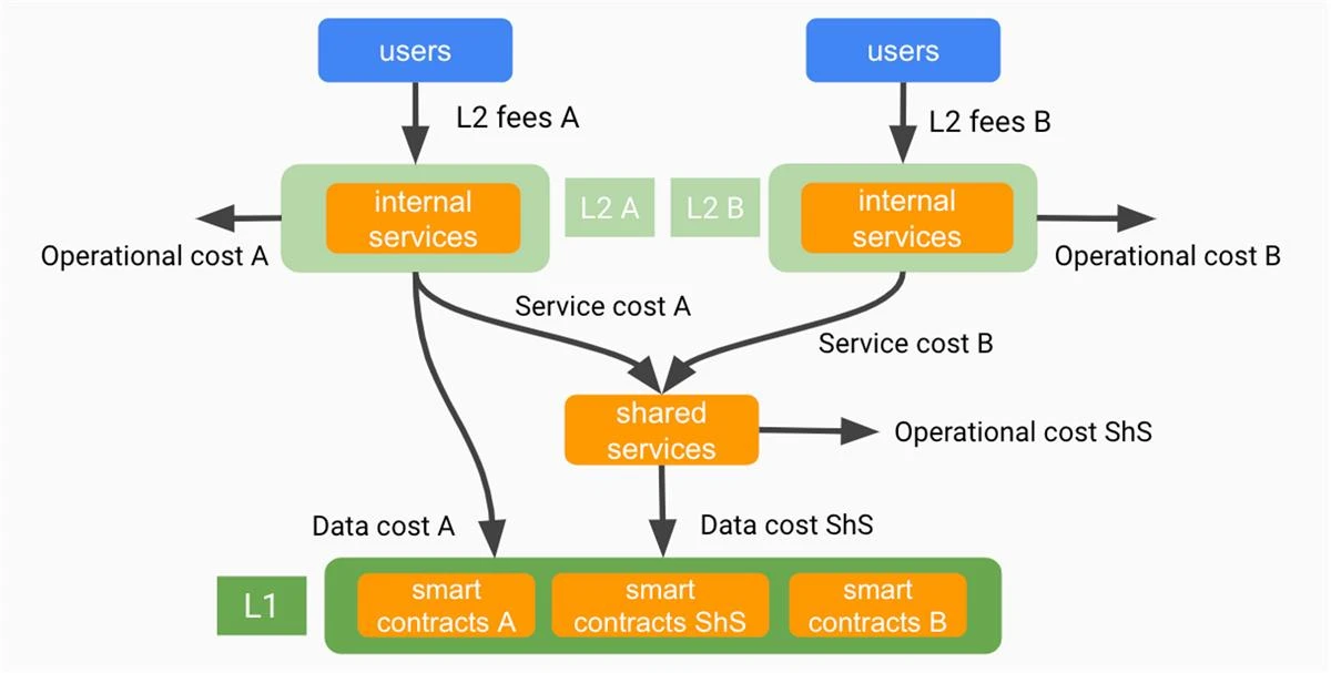L2 的服务成本共享:需要以经济和公平的方式将总服务成本分摊给采用共享服务的 Rollup。